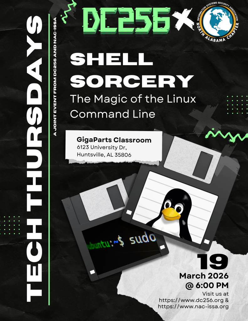 NAC-ISSA and DC256 continue the Tech Thursday series with Shell Sorcery: The Magic of the Linux Command Line.